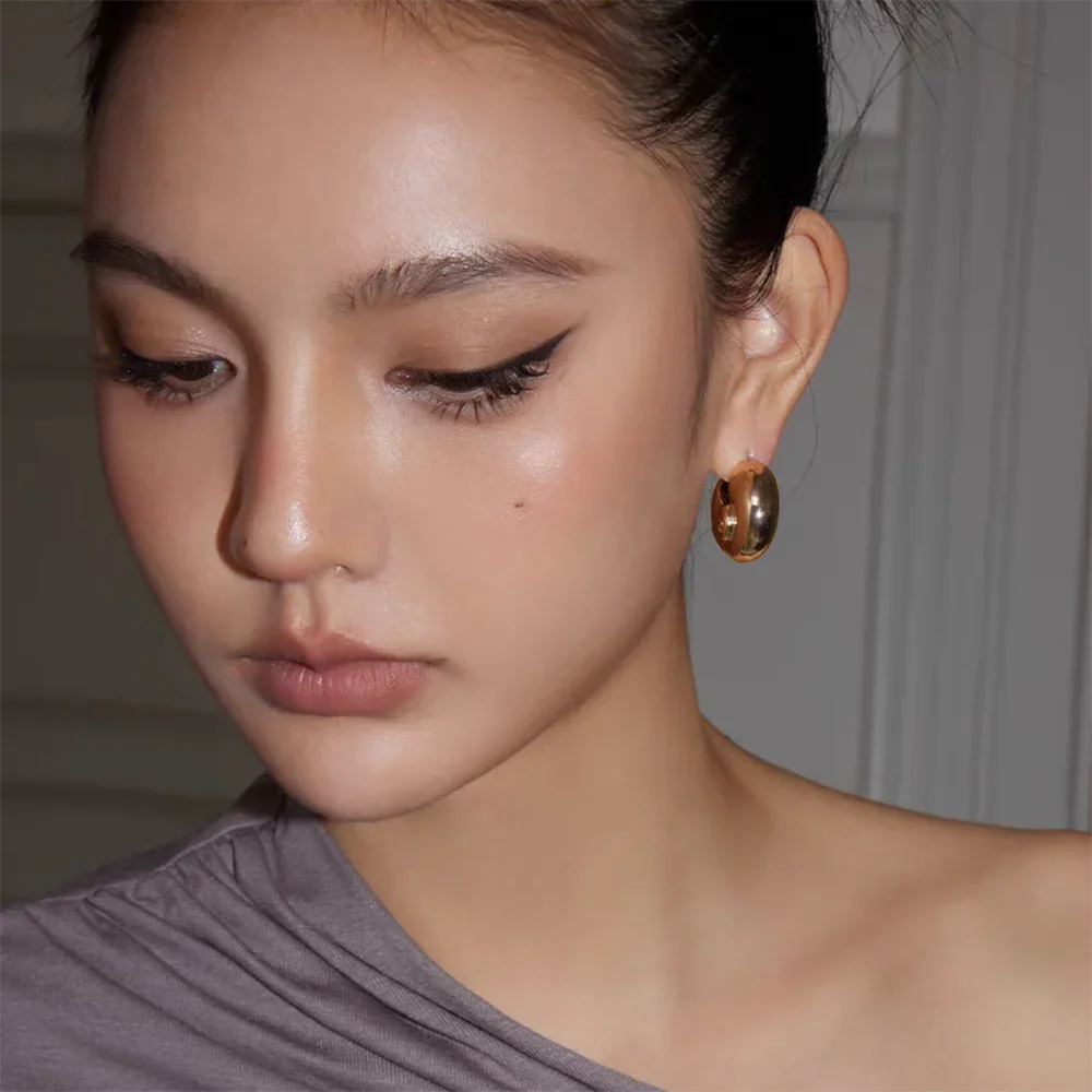 A sculptural spiral hoop earring worn as a matching pair through standard pierced ear closures.