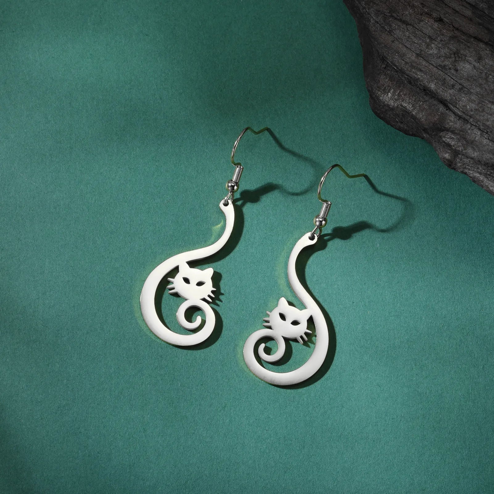 As graceful as a cat in moonlight. Stainless steel shaped with precision and shadow, curling like the swift balance of a black cat in stride.