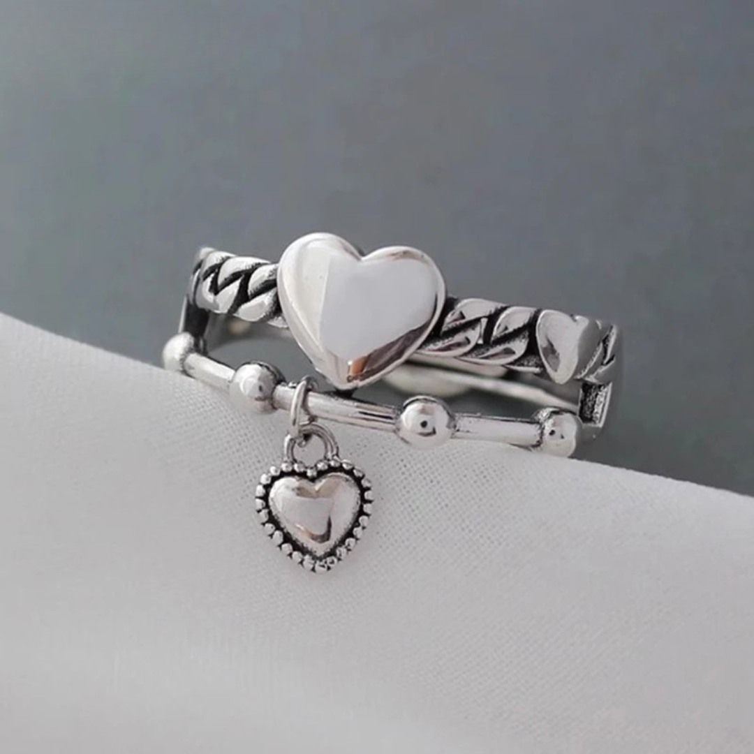 Cast in silver with engraved bandwork and twin hearts, this piece blends weight, texture, and motion in a form that feels heirloom-bound, like a relic from a bloodline built to reign.