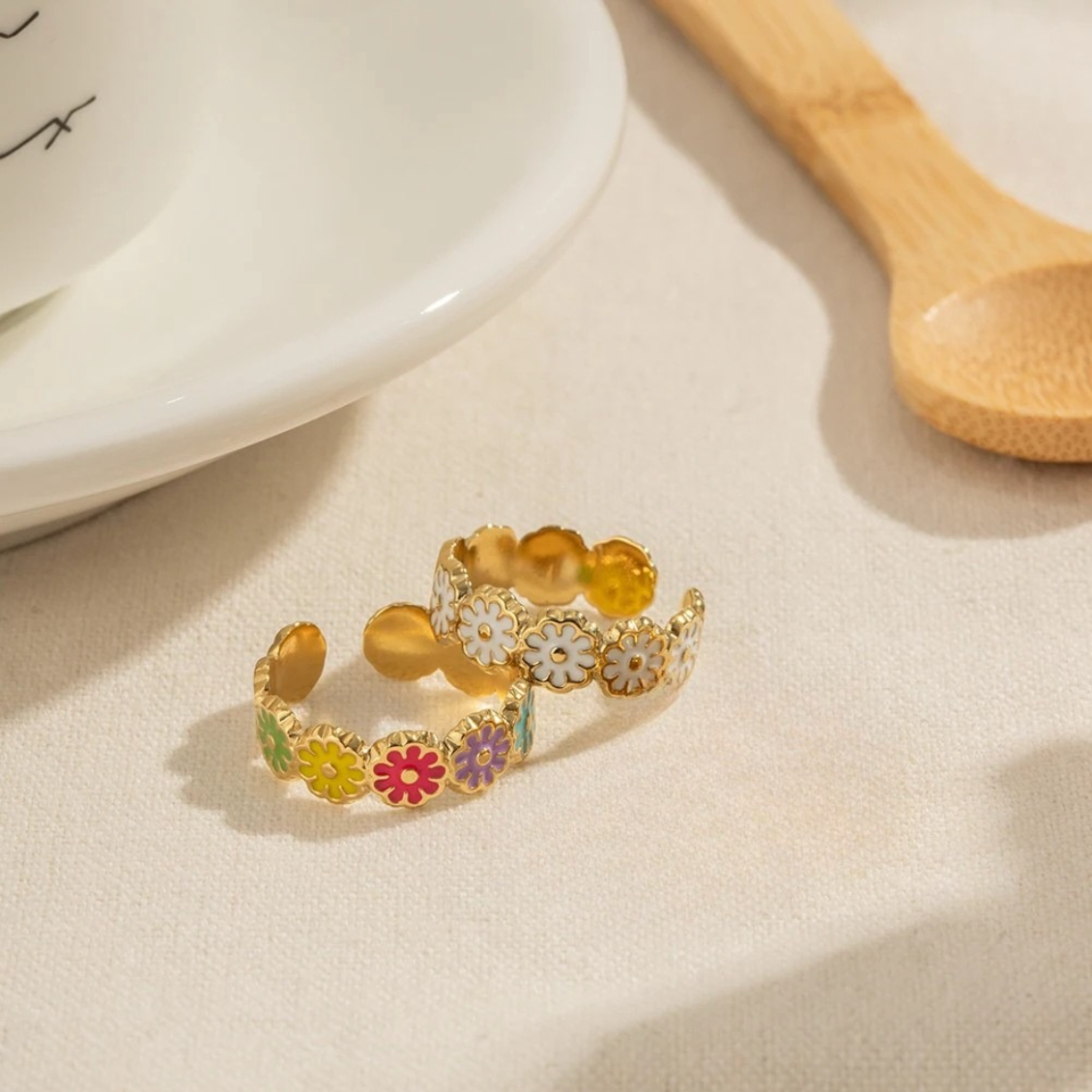 A tranquil garden unfurls in silent bloom, 18K gold plating gracing stainless steel, echoing the surprise of daisies bursting to life in hidden meadows.