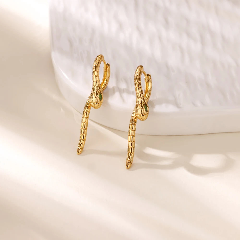 A predatory hiss yielded in stainless steel, the elongated body and green/black set gaze create a sculptural line that moves with the quiet certainty of she who packs venomous bites unapologetically.